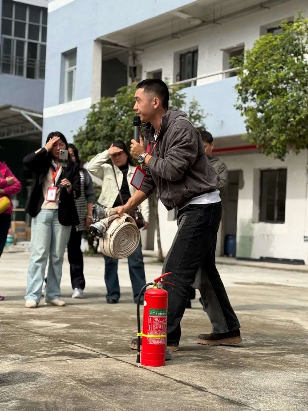 在专业消防老师的指导下,学员们迅速进入状态。面对熊熊“烈火”,学员们毫不畏惧,按照所学步骤,熟练地拿起灭火器进行灭火操作。水带的铺设、水枪的喷射,每一个动作都力求规范、准确。通过这次演练,学员们不仅提升了应对火灾的实际能力,更深刻理解了消防安全工作的重要性和紧迫性。