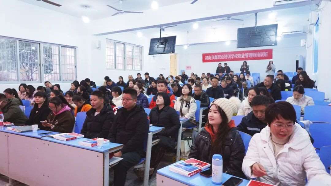 12月27日,长沙寒意渐浓,但京鑫职校的培训教室里却暖意融融、座无虚席。来自长沙市各物业单位的150余名从业人员齐聚一堂,参加2026年第一期物业管理师考前培训,为职业进阶之路蓄力充电。