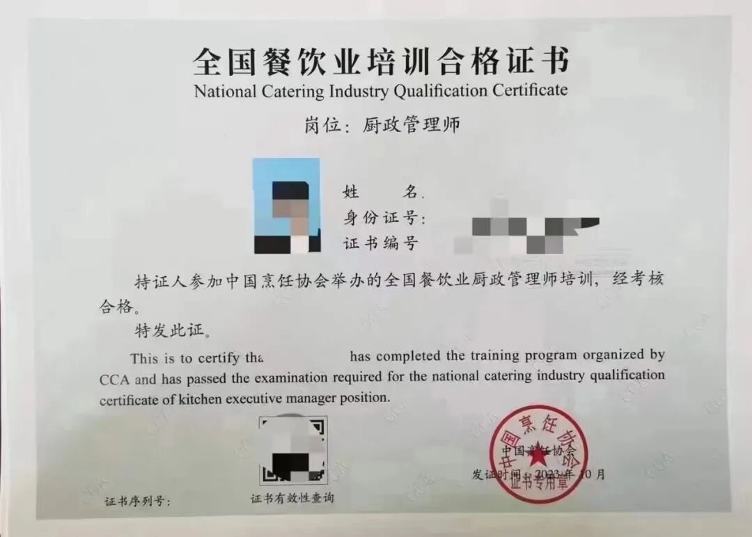 餐饮人必备证书,含金量超高!