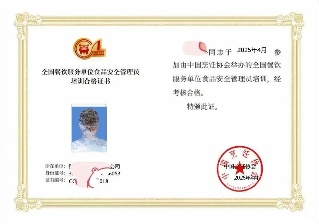 中国烹饪协会官方合作,证书真实可查